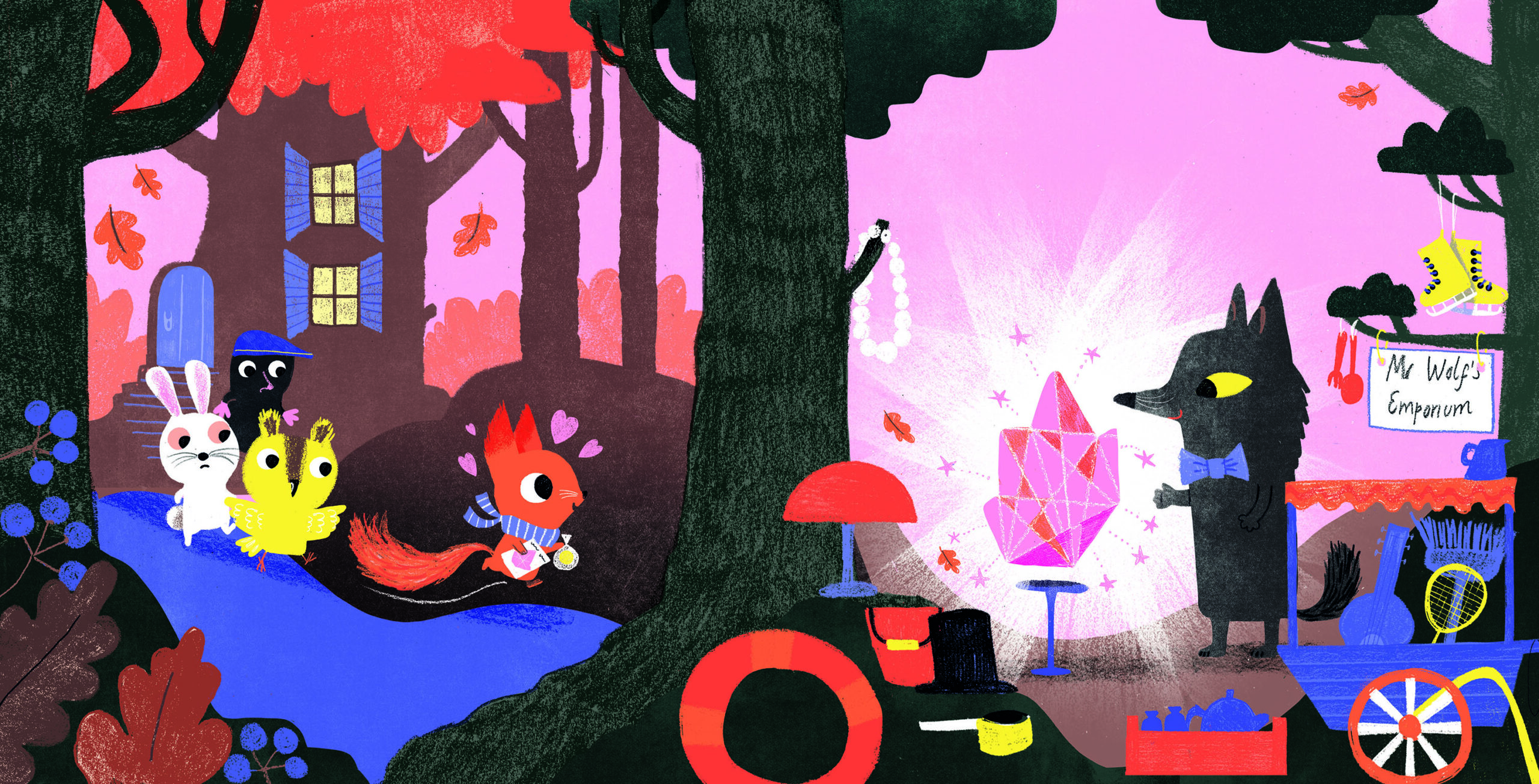 Well, there is an actual origin story for this book! Some years ago, I was watching the news on television, when an item came on that caught my interest. The news reader said that a very famous pop star had announced that she was going to sell her engagement ring. I immediately thought, “Oh! I bet that’s a really beautiful ring!” Then a silly thought popped into my head, which was, “I wonder if I could afford to buy it?!” Then another thought, “Er, probably not! But what if I was prepared to sell EVERYTHING I own—including my house? In theory, could I afford it then?” I was curious as to whether an ordinary person would ever be able to buy something like that— and at what personal cost to themselves, if they did. As soon as these thoughts had crowded into my brain in a rush, I realised that—whilst I would never do anything quite as reckless myself—I had at least gained a good idea for a new picture book about consumerism: The Really Beautiful Ring. Hang on, though, rings aren’t exactly relatable to most picture book age children! But luckily, it was an easy and instant switch for me to change the item that Squirrel covets to a mysterious, magical and alluring THING, and the concept for The Really Beautiful Thing was born— all within a minute or so of seeing that news item. So, it really does prove that story ideas can come from anywhere. This is something I tell children at events— that ideas can pop into your head at anytime— you just have to listen to them and let them in!
