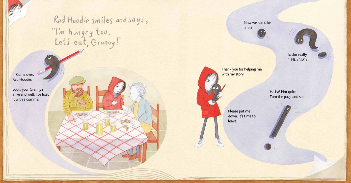 Gillian McClure has written many books for children – you might recognise Selkie – and her most recent one Don’t Eat Granny is a fresh and fun look at punctuation. Red Hoodie shines a new light on a traditional tale but she, granny and the wolf find themselves rather mixed up when commas and full stops end up in the wrong places.
