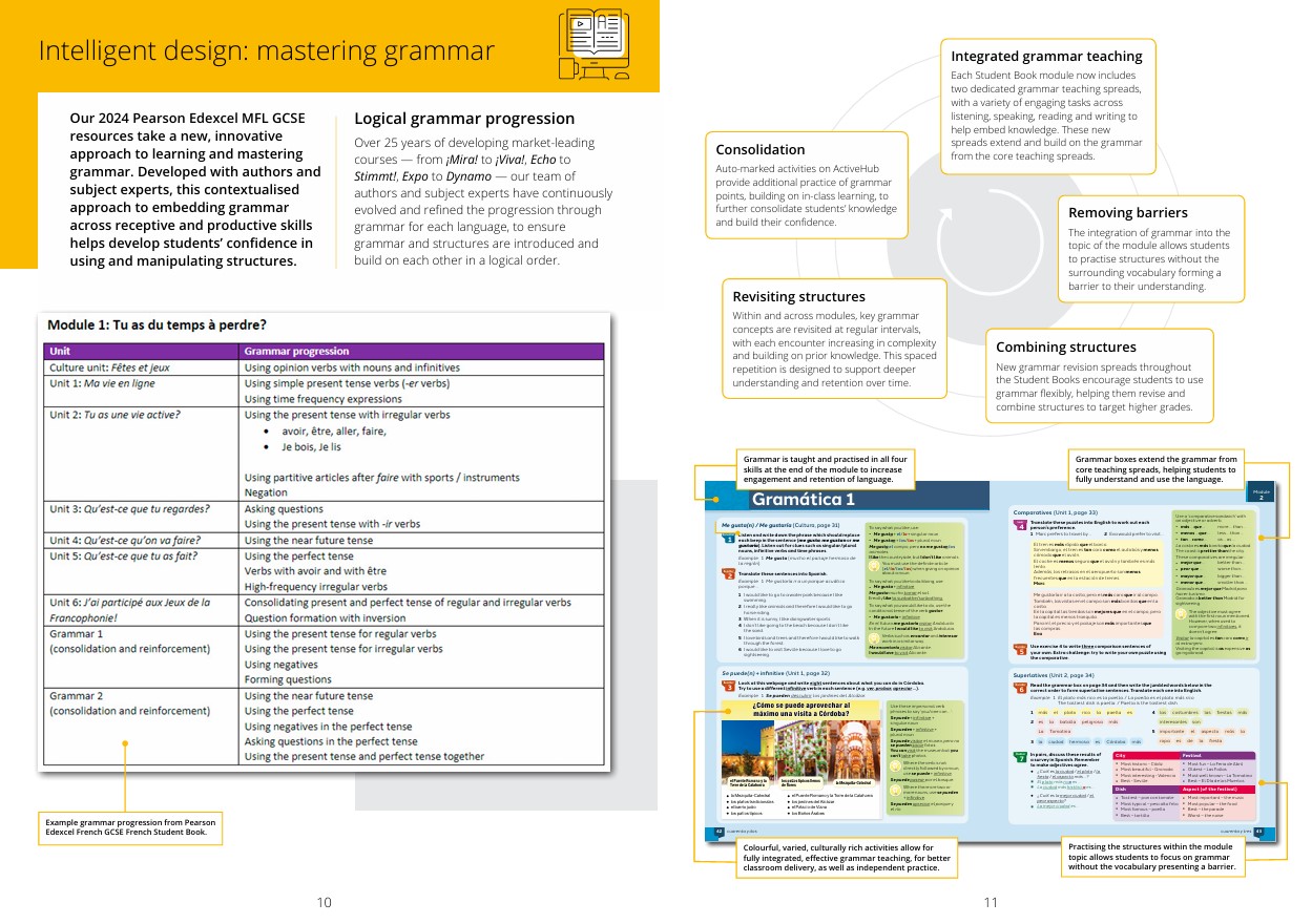 - Built on a structured grammar and vocabulary progression, with systematic recycling of structures and key vocabulary from the specification.