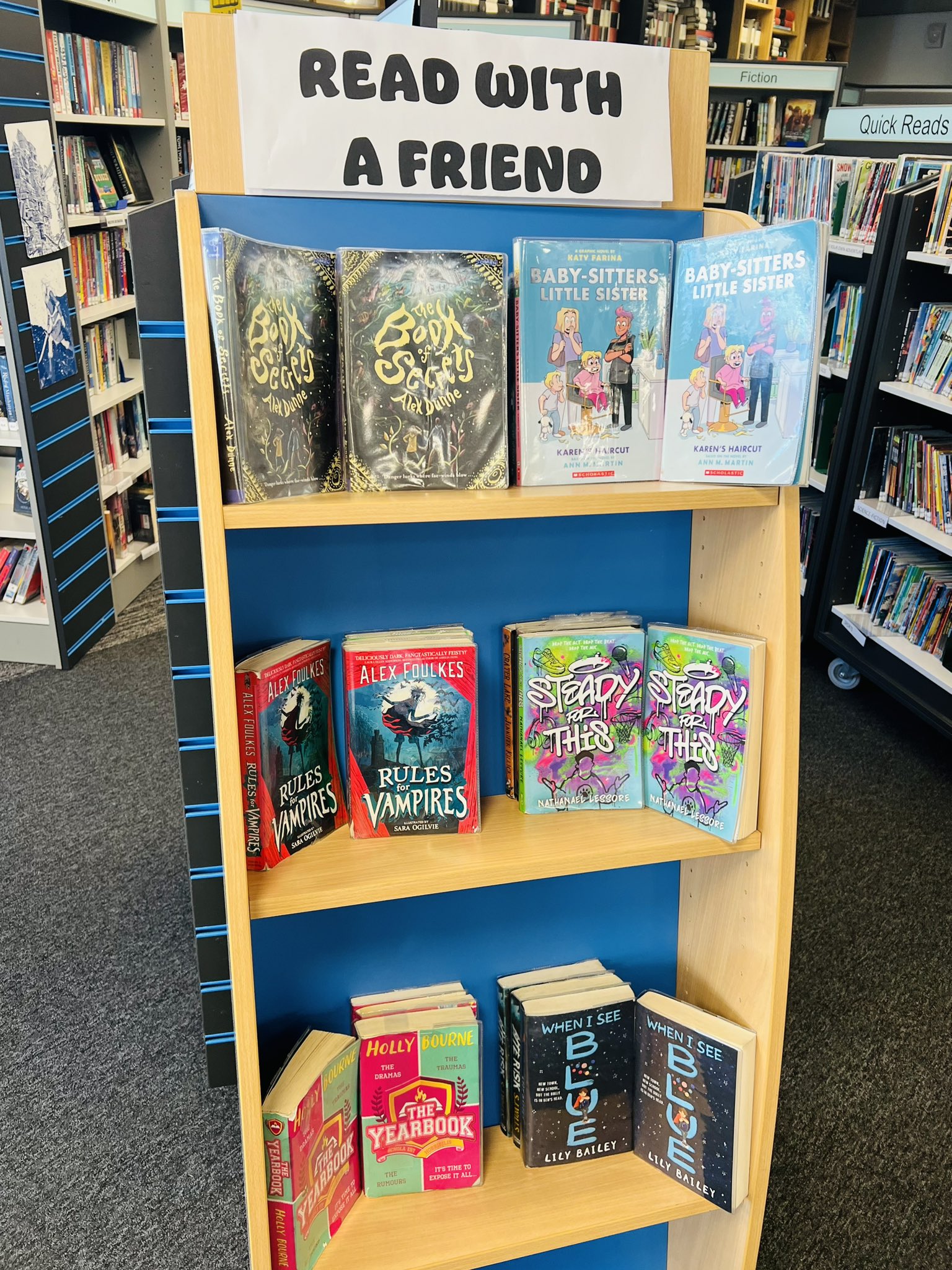 Through all of this, word of mouth throughout the school can do a huge amount. I spoke to the entire school and read passages from Steady for This by Nathanael Lessore which is a hilarious and heartfelt story that everyone should read. The interest in this book surged, therefore it prompted me to create a display called “Read with a Friend” where I simply put multiple copies of books on a shelf so students could read books with their friends at the same pace.