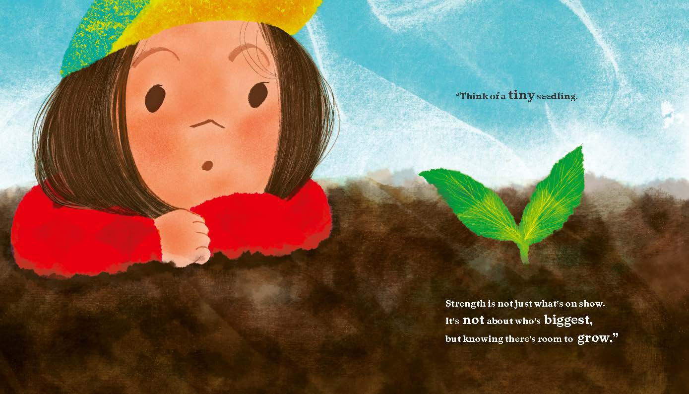My mindset changed: I began to be grateful for the illness because it gave me a chance to reflect and readdress the way I cared for myself previously, and how I could care for my son moving forward. The good stuff I’ve taken with me since becoming unwell now informs how I parent – I can teach my son how to take care of himself and ask for help. This fed into the grandparent arc of I Am Strong Just Being Me, this voice of sharing experience and passing down golden gems of advice.