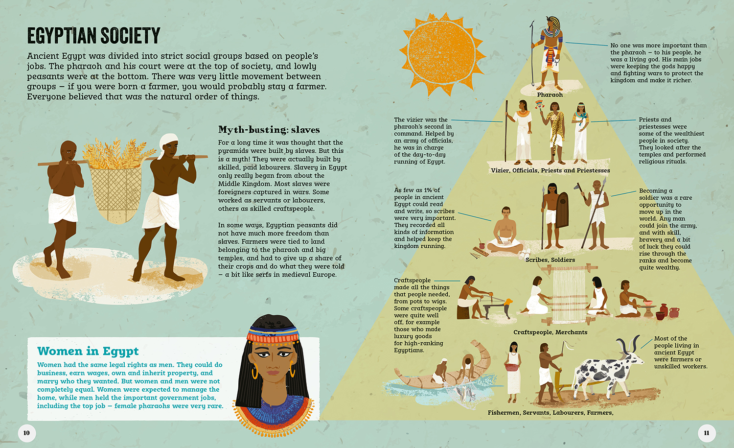 But each book also covers some topics that are unique or especially important to that period of history – for example, in the Romans book we have a spread on life in the Roman army, in Vikings there are spreads on the afterlife and on the iconic Viking longship, and in Ancient Egyptians we have spreads on all the things you instantly think of when you hear the words ‘Ancient Egypt’ – hieroglyphics, pyramids and mummies!