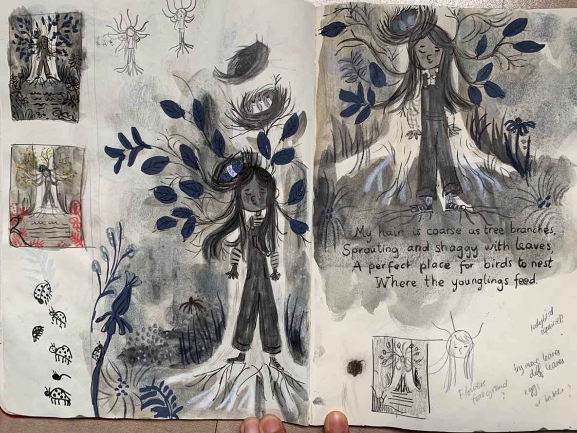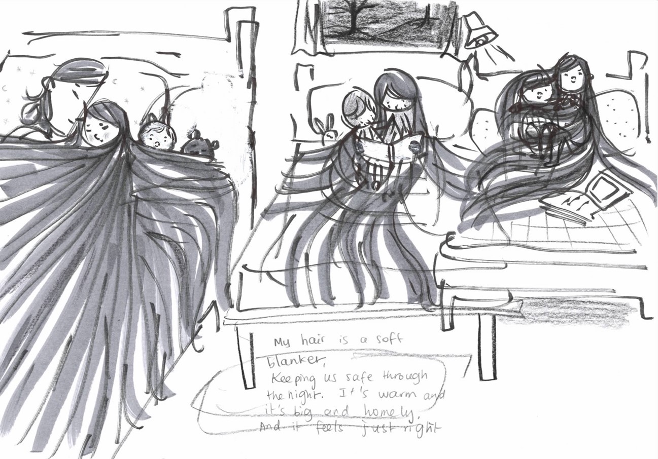 We always marvel over illustrations and how they can really capture stories and amplify the impact of a picture book, but how they end up in a book was rather a mystery. Grace Gleave from Macmillan Children’s has very kindly shared the journey of Emma Farrarons illustrations in Klaus Flugge shortlisted My Hair is as Long as a River by Charlie Castle…